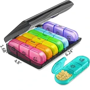 This premium pill container is made of high quality solid-state ABS and BPA-free food-grade PP materials,it is environmentally friendly and practical to ensure your pills are safe to eat.The daily pill box organizer has a large space,allowing you to fill and sort weekly pills in advance,and you can easily track and maintain the medication plan.Each large pill organizer can accommodate 7 pieces fish oils and 20 capsules.Each 7 days pill organizer has 3 separate cases,and the smooth surface won#039;t have residues,thus your pills won#039;t mixed with the previous residues,and also it is easy to clean.