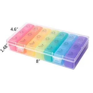 Food grade plastic,separate compartments constructed with durable molded BPA-free materials,which is safe for medical use.Large compartments to provide enough space for all meds,great for one-week supplement or medication.Daily compartments are divided into morning,noon,night,3 times of one day to remind you take pill on time to accurately manage your health.The pill box is simple handy,perfect for a person who needs to take pills different times of one day.Highly recommend to people who take several meds at different times.You will love the functionality of being able to take your daily pills with you when you are traveling,working or in the school!