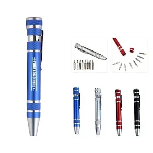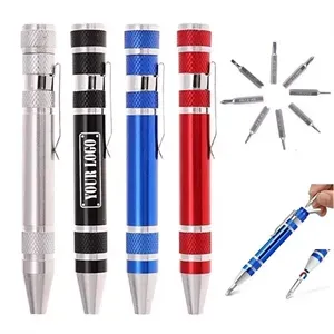 This 8 in 1 pen-shape multi-functional tool pen is made of aluminum alloy metal construction. Compact size and clip allow this tool to fit anywhere a pen might fit: from a pocket to a desk drawer, or even behind your ear. The various bits can be inserted into the magnetic "pen" tip for small repairs, precision work or eyeglass fixes.
