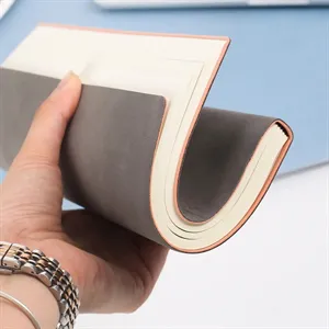 The leatherette cover on this sleek notebook gives it a sophisticated look. Use it to take notes at your next meeting or leave it on your nightstand as a gratitude journal. Soft, flexible faux leather refillable cover with elastic pen loop. Domestic-made refillable journal inside features white flexible paper covers, 100 sheets of ruled filler and perfect-bound spine, matching satin ribbon bookmark, and thread-sewn book binding, Includes a imprint and custom full-color, 1-sided tip-in as the 1st page.