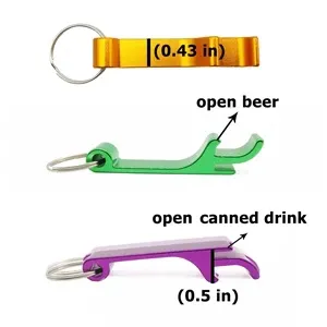 The aluminum alloy bottle opener is so versatile it can be used on a wide variety of pop tops, soda cans and metal caps. The soda can opener is small and lightweight, easy to fit in pocket. It has a ring on it and it can be hung on the keychain, easy to carry everywhere.
