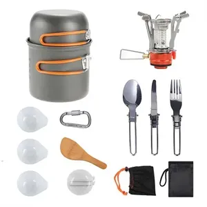 Camping Cookware Mess Kit Set with Stove 10pcs set
