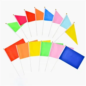 Our flagpole is made of high-quality plastic poles, and the flag surface is also made of high-quality polyester materials, which are assembled together and are very strong. They are printed with a sharp and vivid color, and they don#039;t smear in the rain and fade resistant. These stick flags are great for anniversary celebrations, National Day, parade, World Cup. You can also put the flag in the backyard, garden, playground, or as desk decorations. Welcome to customize various patterns.