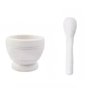 The mortar and pestle set is made from PP material. It is lightweight,ultra durable and scratch resistant.This is not just for guacamole, the mortar and pestle is a great option for nearly any ingredient; crush up spices and herbs; create homemade pesto by grinding up nuts and seeds; serve up fresh dips; even a great choice for homemade dressings and salsas; impress your entire guest list with the tastiest dishes ever.