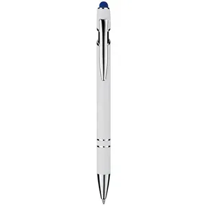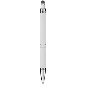 Soft touch white metal pen with tread-grip, colored stylus and full color imprint , fashion colors!