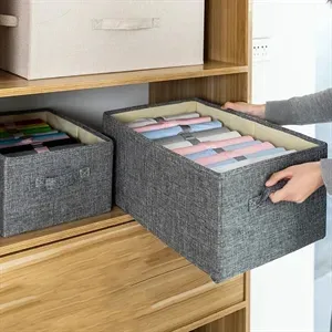 Put the bottom boards in to get these foldable storage bins ready for miscellaneous items, or fold them up to save your space when not in use