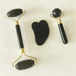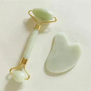 This jade double headed roller beauty instrument is made of jade and has a metal handle Can be used in beauty salons or at home Using it can improve your facial skin and relax your facial meridians Use with lotion to accelerate absorption