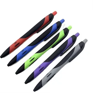 The pen features a soft-touch rubberized barrel and smooth writing with black hybrid gel ink.