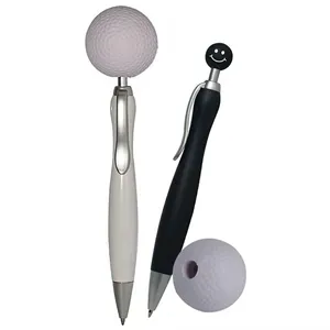 This golf top click pen is a fun and whimsical addition to include at your next giveaway event. The 6" x 1.5" ballpoint pen is designed with a Golf ball Squeezies stress ball topper and a pocket clip.