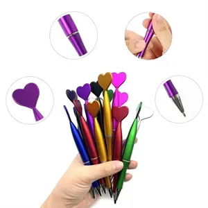 It#039;s made of plastic, but has a metal look and a heart-shaped top piece. Choose from an assortment of colors and customize each one with an imprinted brand name or logo on both sides of the barrel as well as both sides of the heart topper.