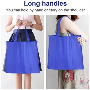 This is a tote bag made of non-woven fabric, perfect for carrying large quantities of goods. It is an environmentally friendly alternative to plastic bags and can be used over and over again. This tote bag comes with a 20-inch homemade handle/shoulder strap. Your logo can be printed on it to enhance your branding. Price includes air transportation.