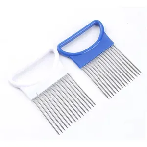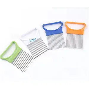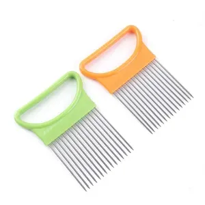 Each onion holder slicer is equipped with 15 prongs and plastic handle, allow you keep onion in place for quick and easy slicing, thick plastic handle and non-slip, makes your holding more comfortable, in addition, the onion holder with a transparent protective sleeve outside, which can protect fingers and hands from hurting.It#039;s not only suitable for slicing onion, but also great for tomatoes, potatoes, cucumbers, eggs, waffle or various fruits, which are practical and convenient cooking tools, you can enjoy the cutting work together with your lover, family or friends to have more fun.
