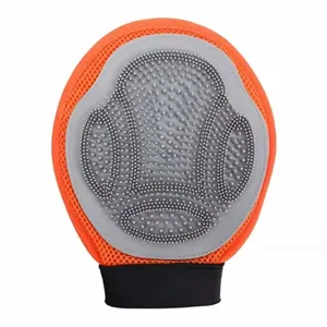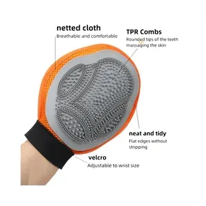 This is a double sided glove for pet hair grooming, the rubber side removes loose hair. Simply put on the glove and massage the skin and remove hair with caressing motions. The elastic band is adjustable in size for universal fit. The gloves are suitable for dogs, cats and all hairs. The gloves are reusable and absorbent. Your logo can be printed on the surface to enhance brand awareness.
