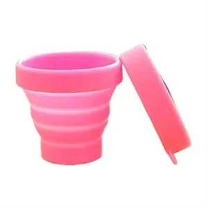Health Material.The collapsible travel cups come with lids that go on tightly, keeping contaminates out of your cup.The capacity 170ml.Before folding,top diameter 3.15inch,height 3inch, bottom diameter 1.65inch,the collapsible cup only have height 0.79inch when folded.The small collapsible volume made them both of these use for home and outdoor.